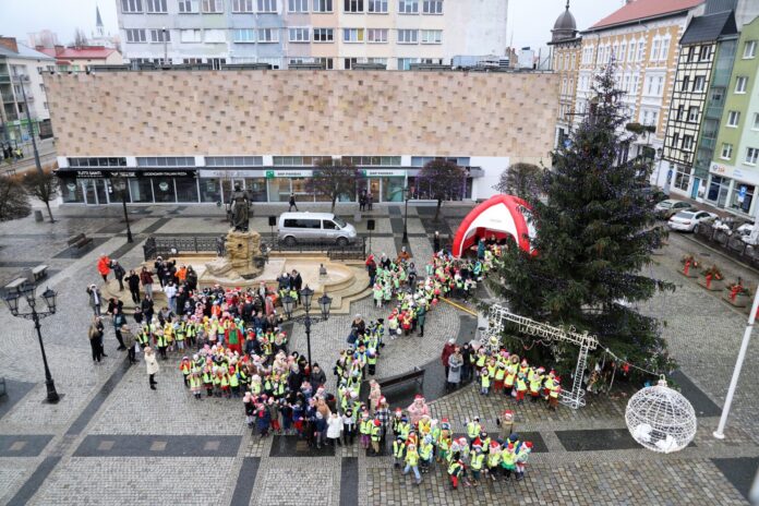 Choinka tradycyjnie stanęła na Starym Rynku. Jak co roku przedszkolaki tłumnie przybyły do centrum, aby wziąć udział w wielkiej akcji dekorowania drzewka. To wyjątkowa choinka, bo ozdoby, którymi została udekorowana maluchy przygotowały własnoręcznie na zajęciach w przedszkolu. W tym roku zabawa miała też wymiar ekologiczny, bo dekoracje wykonane zostały z materiałów odpornych na warunki pogodowe i takich, które nie zagrażają środowisku, tj. patyczków po lodach, szyszek, suszonych owoców, itp.