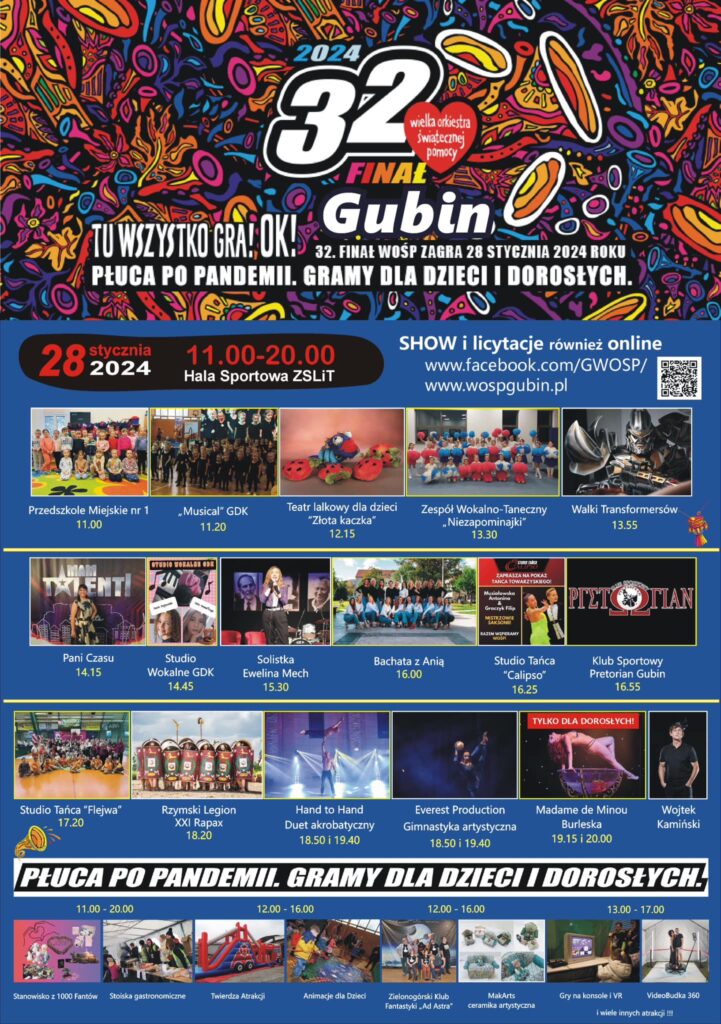 Jak co roku gubiński sztab WOŚP będzie grał na Hali ZSLiT przy ul. Krakowskiej. Organizatorzy przygotowali całą masę atrakcji na ten dzień i niesamowite fanty na licytacje. Zapraszamy do sprawdzenia najciekawszych naszym zdaniem rzeczy, które wydarzą się podczas 32. Finału Wielkiej Orkiestry Świątecznej Pomocy.