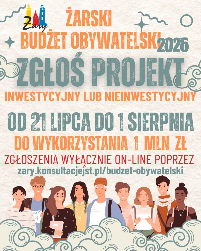 21 lipca rozpoczął się nabór projektów do kolejnej edycji Żarskiego Budżetu Obywatelskiego. Mieszkańcy mają czas do 1 sierpnia, by zgłosić swoje pomysły – inwestycyjne, ekologiczne czy kulturalne – które mogą zostać zrealizowane już w 2026 roku. Cały proces odbywa się elektronicznie, za pośrednictwem platformy https://zary.konsultacjejst.pl/budzet-obywatelski.