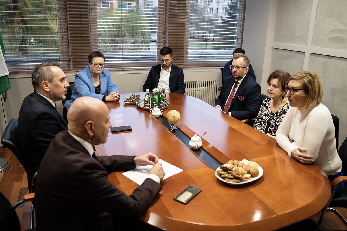 „Ostatnio często jeżdżę do Warszawy w sprawach naszego miasta, a dzisiaj 'Warszawa’ przyjechała do nas, do Zielonej Góry! W partnerskiej i rzeczowej rozmowie, oprócz tematów ważnych dla całego kraju – takich jak problematyka cyfryzacji w systemie edukacji, nadziei i zagrożeń jakie niesie ze sobą rozwój sztucznej inteligencji, czy problemu pogłębiającego się niżu demograficznego – omówiliśmy także możliwości wsparcia przez rząd starań samorządu o zrównoważony rozwój placówek oświatowych.”