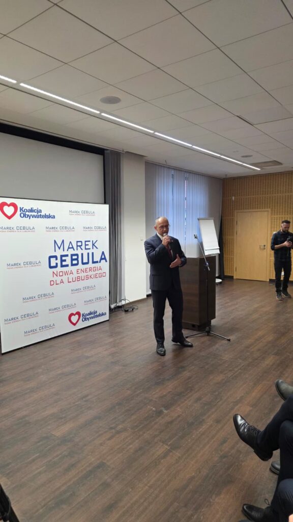 „Nowa Energia dla Lubuskiego” takie hasło powitało dziennikarzy i działaczy Koalicji Obywatelskiej którzy przybyli dzisiaj (16.02.2026) do hotelu Ruben na spotkanie podczas którego Wojewoda Lubuski Marek Cebula ogłosił start w wyborach na przewodniczącego Koalicji Obywatelskiej w regionie.