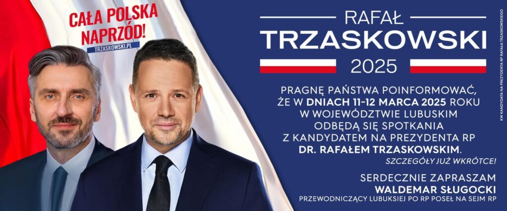 Znamy już daty kiedy lider sondaży kandydat na Prezydenta RP Rafał Trzaskowski odwiedzi województwo lubuskie. Jak przekazali posłowie Krystyna Sibińska i Waldemar Sługocki będzie to w dniach 11-12 marca (wtorek, środa) 2025 r.